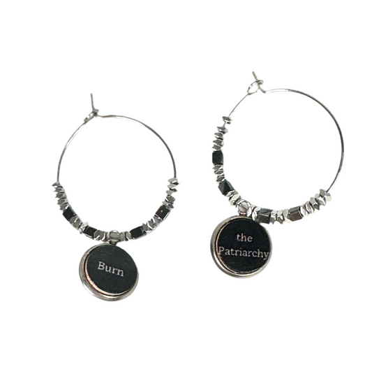 Burn the Patriarchy Stainless Steel Hoops embellished with Hematite Beads
