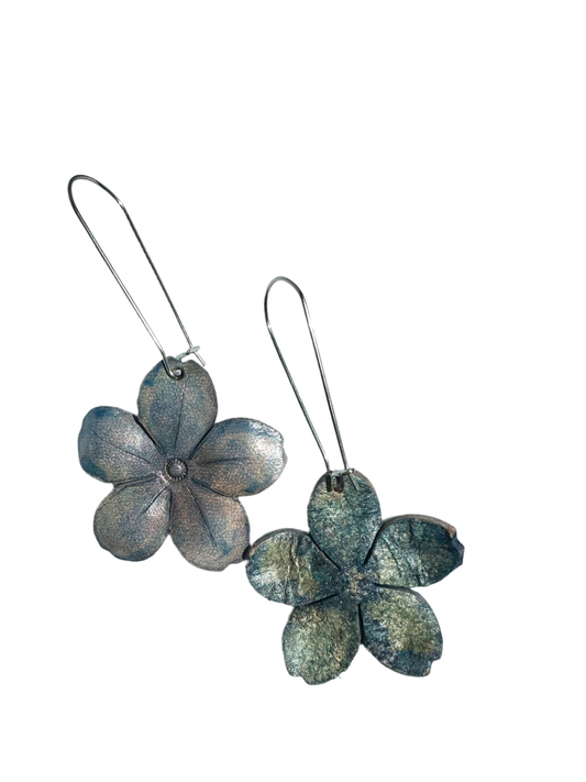 Denim Leather Pinched Flowers