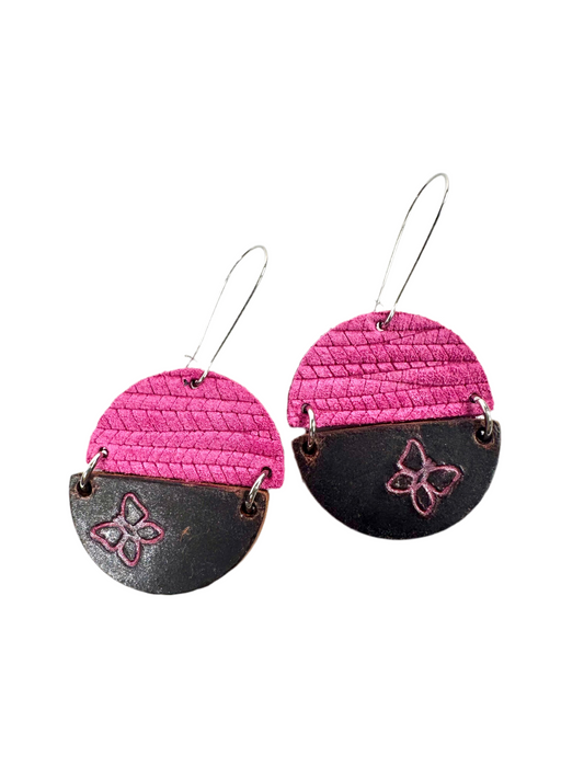 Butterly Stamped Leather Half Circles Earrings