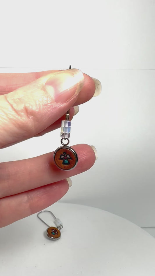 Angel Stamped Leather Earrings with Opal Protection Stones