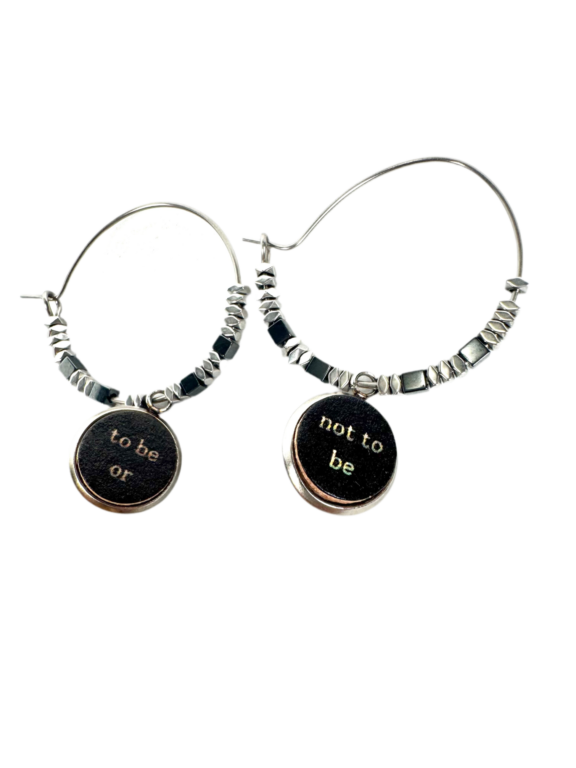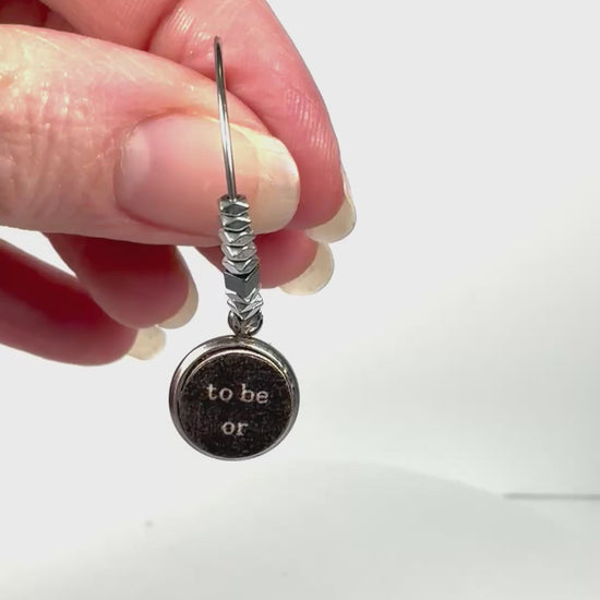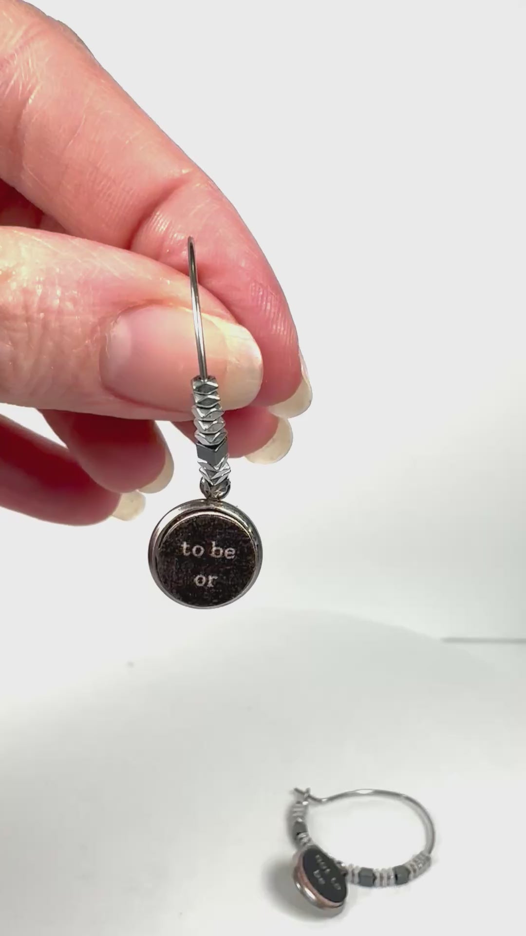 This is a handmade item. The writing and image was created then transferred onto leather and placed into the bezel to create these one of a kind earrings.